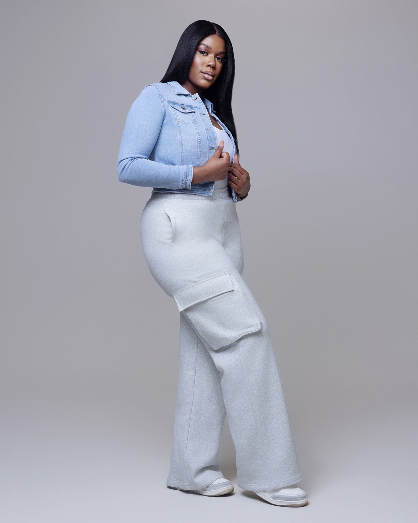 Designed for the tall woman who values both comfort and style, these grey wide-leg cargo sweatpants are the ultimate everyday essential.