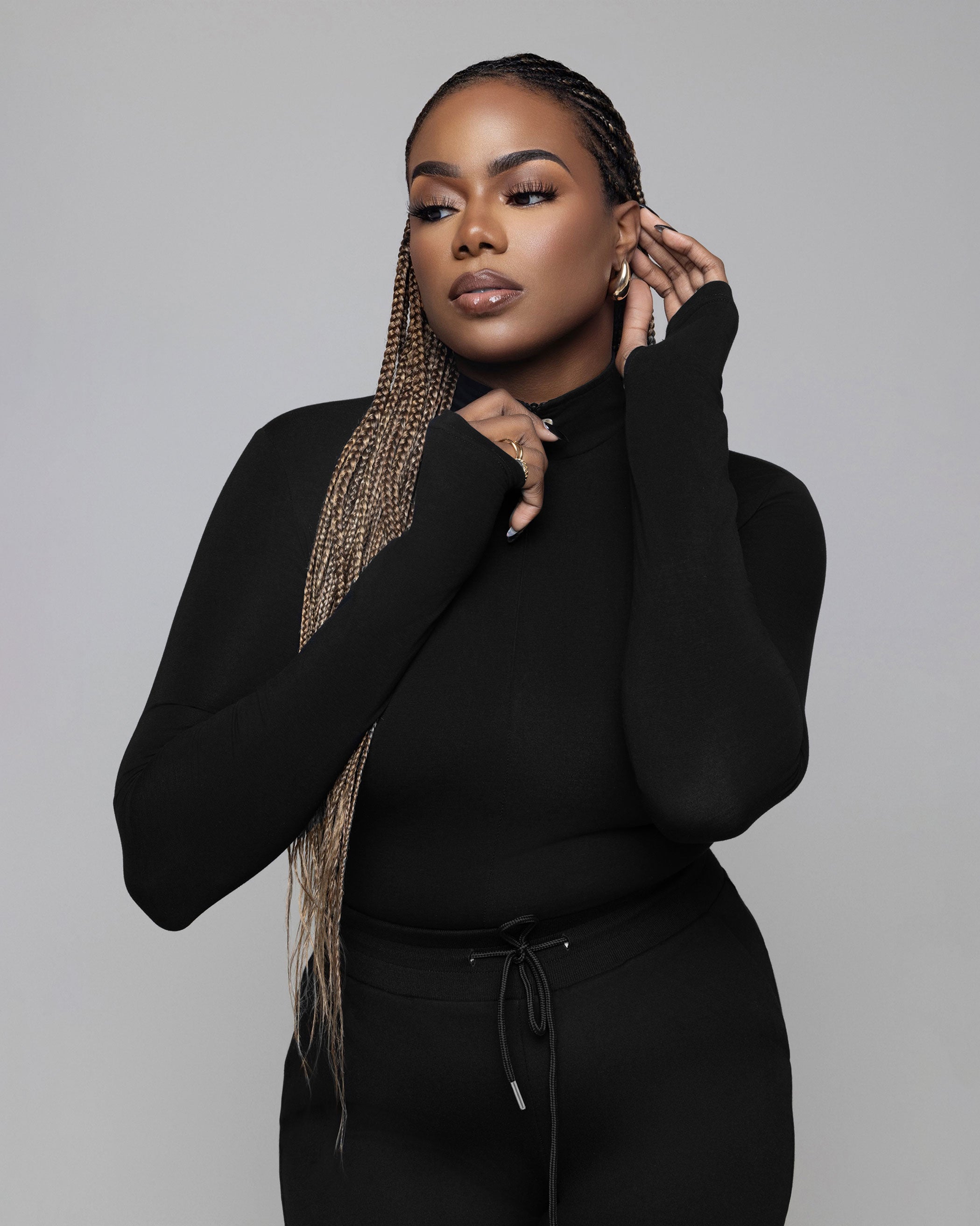 Finally, a bodysuit designed with tall women in mind! This sleek and versatile long-torso bodysuit features a high neckline and long sleeves with thumbhole details, ensuring a stylish and functional fit. Crafted from premium stretch fabric, it moves with you while offering a smooth, flattering silhouette.